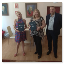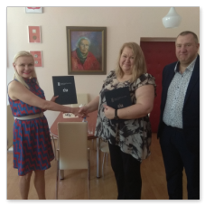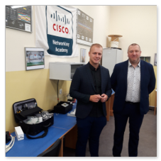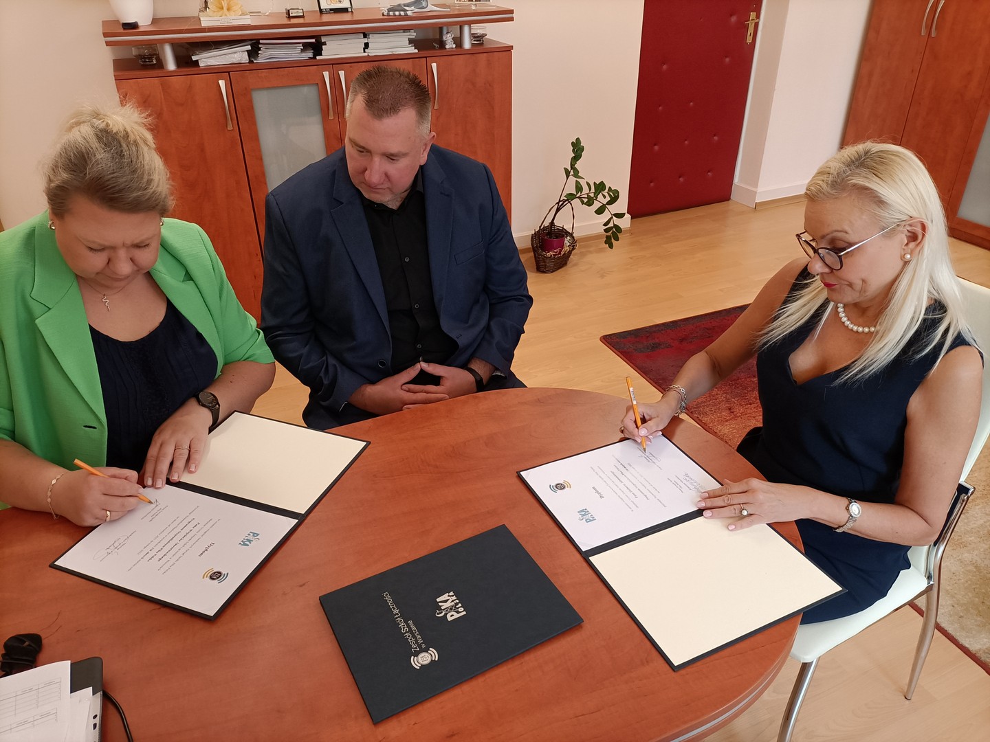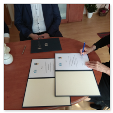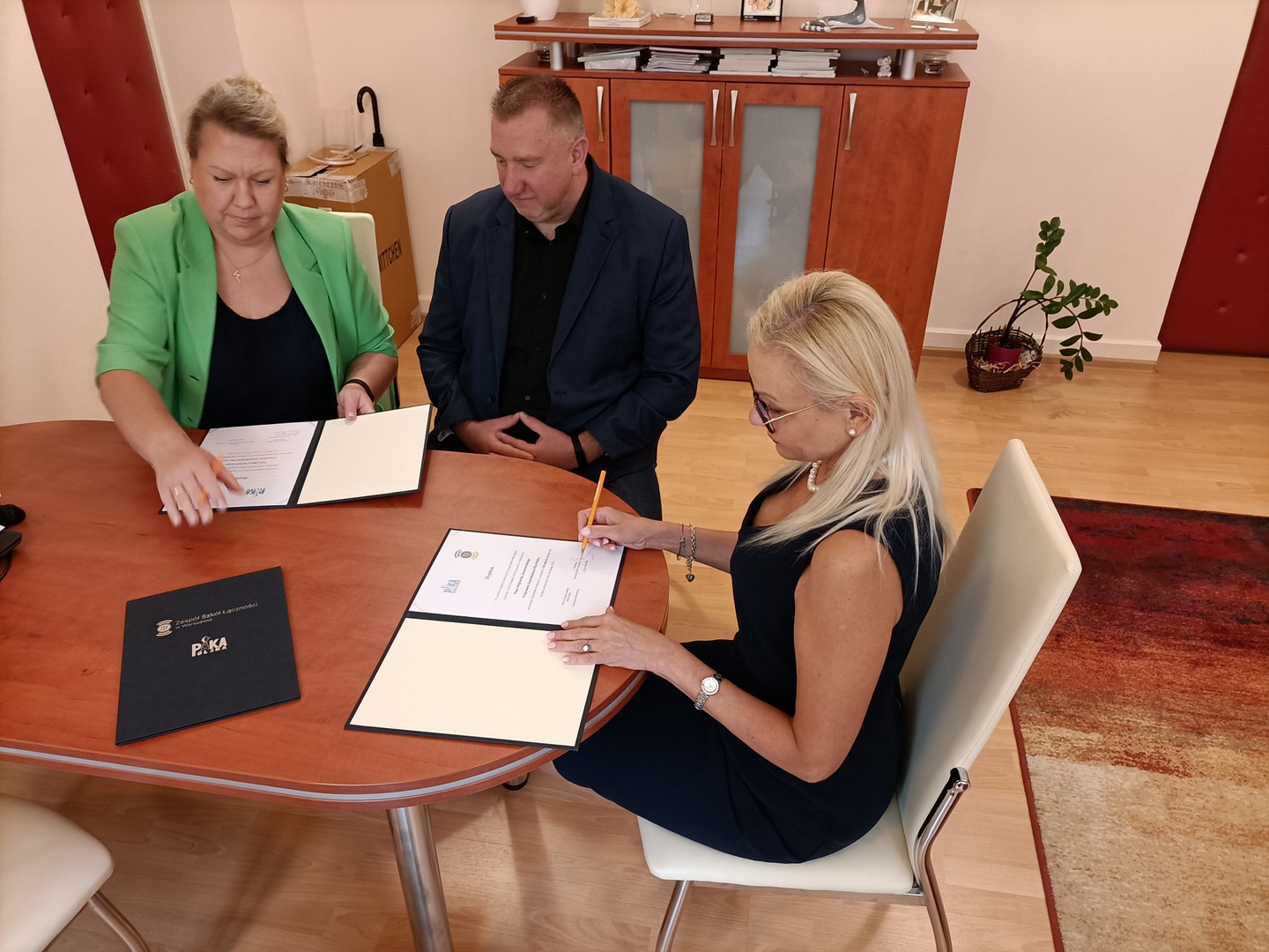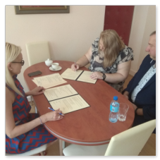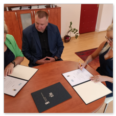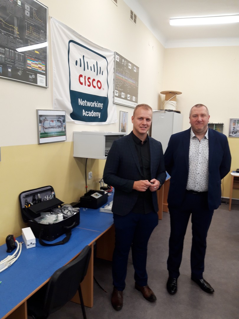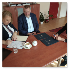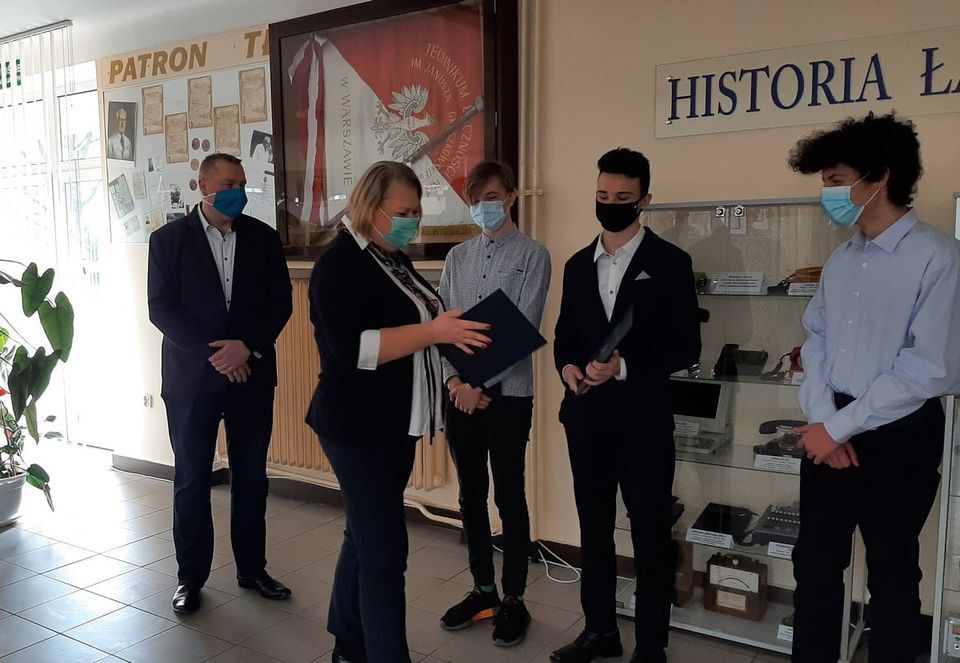 Podpisanie Umowy Patronackiej w dniu 26 czerwca 2020 z powodu trwającej epidemii COVID-19 miało dość kameralny charakter, ale to właśnie wyzwania, które stawia przed Nami ten trudny czas stały się głównym tematem rozmów Członków Zarządu naszej firmy z Dyrekcją Zespołu Szkół Łączności.
